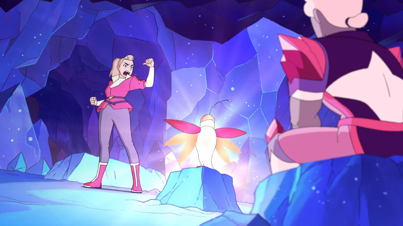 Glory lights up a cave after being startled by Adora.