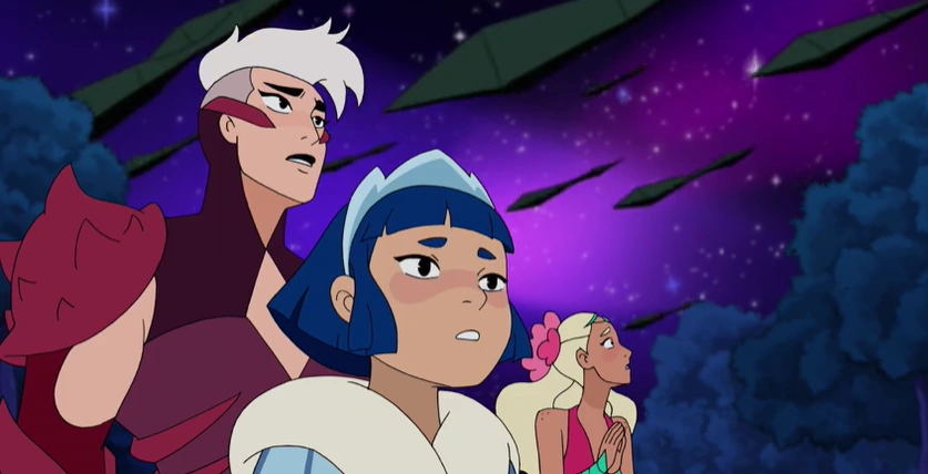 She-Ra then comes before Horde Prime, who vows he will return only for She-Ra to correct him saying his reign is over and banishes him from Hordak's body with a surge of magic, killing him and ending the threat of the Horde once and for all. Scorpia celebrates with Frosta and Perfuma, and Catra comes up to them and starts to apologize to Scorpia, but before she can finish talking, Scorpia hugs her and forgives her. Perfuma and Frosta then join in the hug.